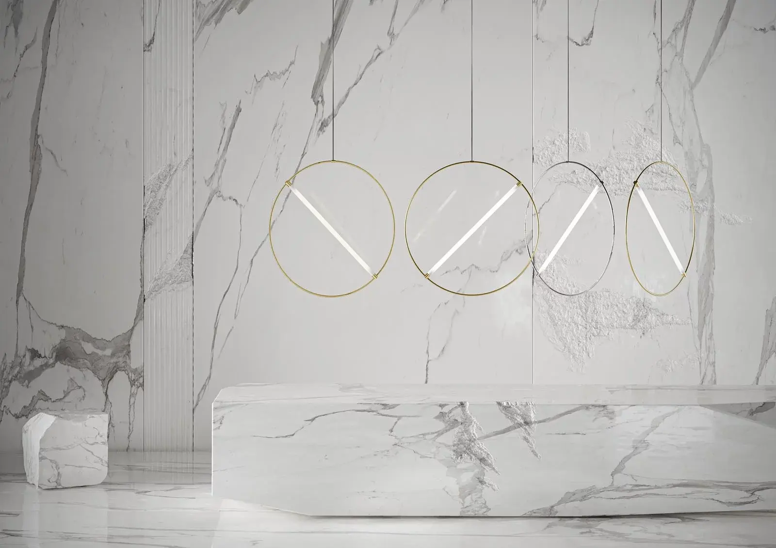 Потолочный светильник, состоящий из металлической круглой трубки и матовой световой трубки
