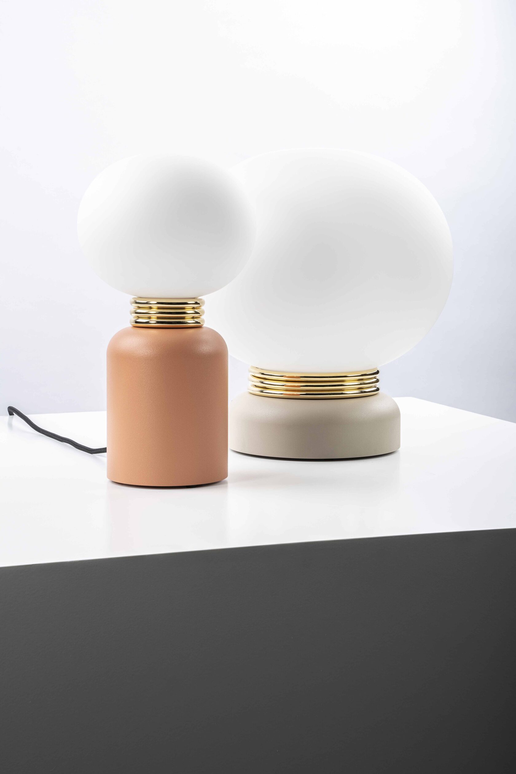 Настольная лампа с металлической конструкцией и матовой световой сферой
